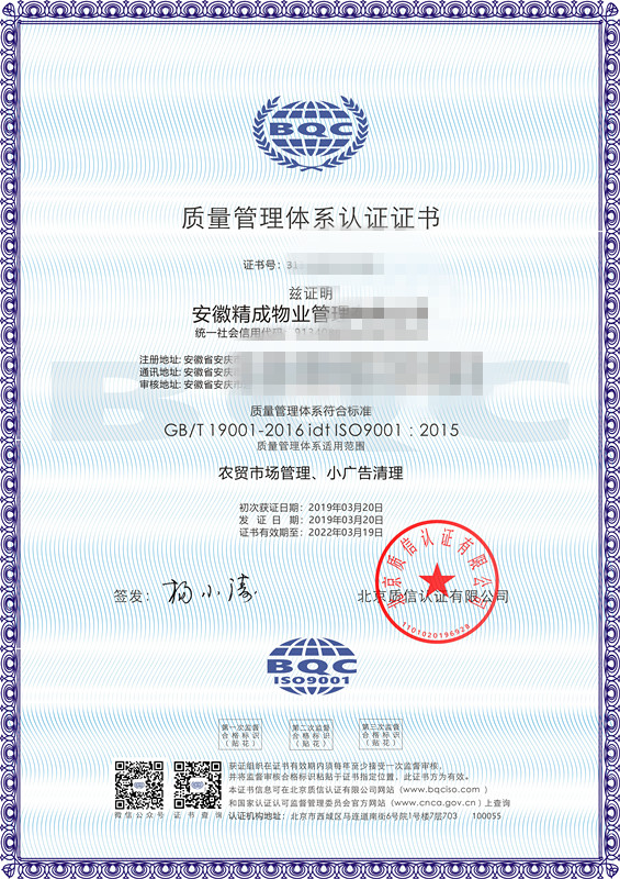 北京質信認證是國家認證認可監督管理委員會批準(批準號:CNCA-R-2017-313)的獨立公正的三方審核認證機構,可從事ISO9001質量管理體系認證、ISO14001環境管理體系認證、ISO45001職業健康安全管理體系認證,頒發相應的認證證書。質信認證由我國認證界資深從業人士發起設立,目標是成為一家國際領先民族認證品牌,在扁平化的全球競爭中,不斷發展壯大自己,有力地服務于各類組織。